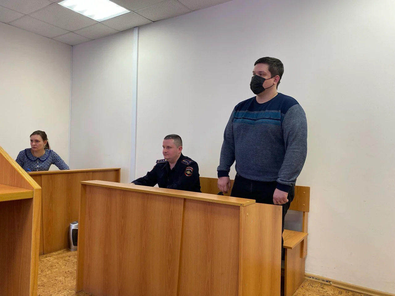 Фото из суда: Медиазона. Участковый Антонов (слева) и оперативник центра «Э» Столяров (справа), который «обнаружил» публикацию Мосиной в инстаграме.