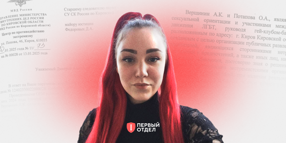 8 ноября 2024 года пропагандистский портал Nesler рассказал, что в Кирове задержали сотрудников клуба «Черный клевер» по делу об «ЛГБТ-экстремизме»: «Руководителем „клуба“ являлась 26-летняя кировчанка Оксана (имя изменено). Она, не скрывая преданности „розовым отношениям“, не отрицала, что целью работы „Черного клевера“, как символа счастья ЛГБТ-движения, была „организация публичных мероприятий для лиц, сторонников нетрадиционных сексуальных отношений“. А также „иных лиц“, вероятно, в возрасте раннего и позднего пубертата, которые в силу юношеской гипер-сексуальности смогут оценить и принять идеологию „нетрадиционных движений“». Эти слова противоречат материалам дела, за исключением одного факта: среди обвиняемых, действительно, девушка из Кирова. Ее зовут Ольга Потапова и 28 ноября 2025 года она покинула Россию. «Первый отдел» поговорил с ней об уголовном деле, СИЗО, домашнем аресте и отъезде за границу.