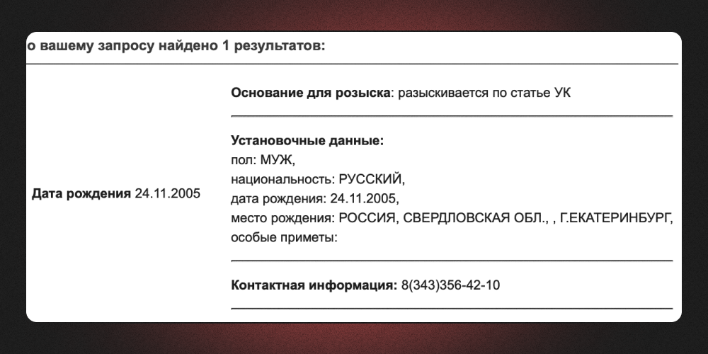 Скрин: база розыска МВД