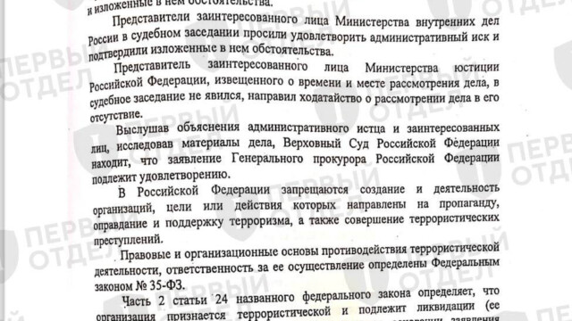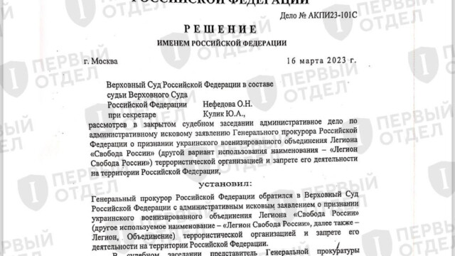 «Первый отдел» получил копию решения Верховного Суда РФ о признании «Легиона “Свобода России”» террористической организацией и его запрете на территории России. Также, как в случае с решением о признании экстремистским так называемого «Международного общественного движения ЛГБТ», Верховный Суд отказывался предоставлять документ по запросу. Получить решение позволило одно из множества уголовных дел о приготовлении к государственной измене в форме «перехода на сторону противника», в которых работают адвокаты «Первого отдела». Само заседание о запрете «Легиона» проходило в закрытом режиме, решение вынес тот же судья, что и по «делу ЛГБТ» — Олег Нефедов.