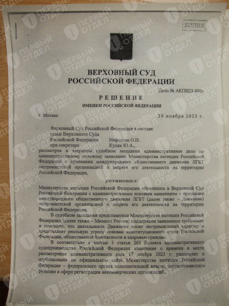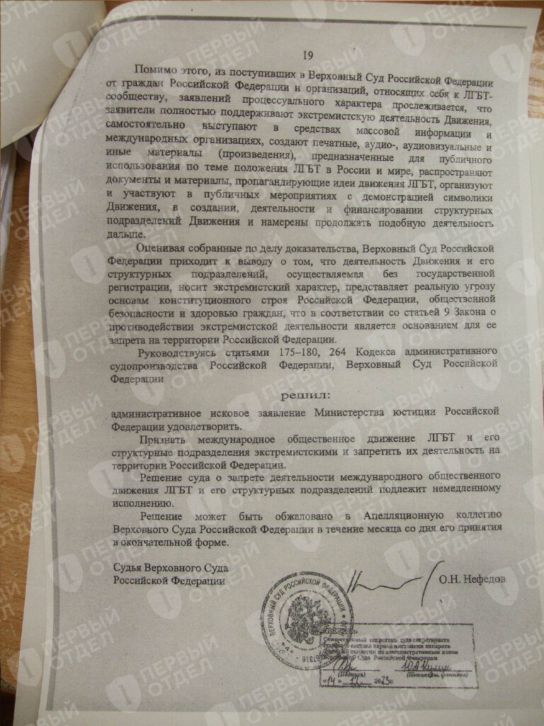 Что такое «международное движение ЛГБТ»? Кто в нём состоит? Как оно угрожает безопасности России? Верховный Суд отвечает на 19 страницах поразительного документа эпохи.